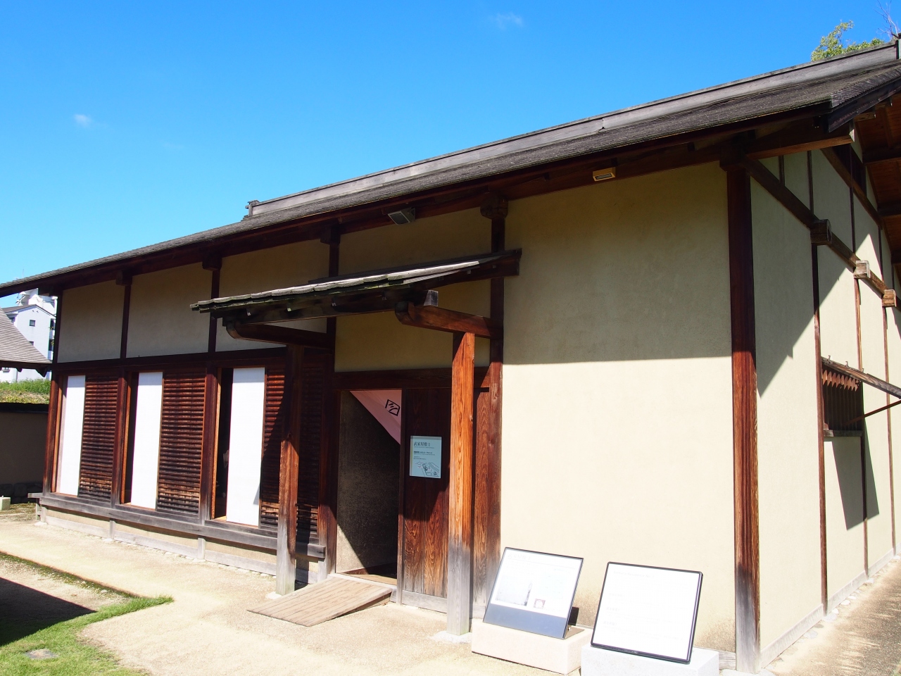 道後温泉公園、湯城跡の一角(南側)には湯城にまつわる遺跡などが残されています。そのために資料館や武家屋敷1、2などが再現されています。新しい建物で資料も見やすいです。入場は無料なので散歩がてらたちよるのもいいです。