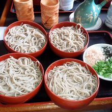 メニューを見たところ、蕎麦以外にご飯ものはありますが、天ぷらは無し。普通に割子4枚を頼みました。タレが出雲蕎麦の割には結構濃くて辛目。それが特徴のようですが、私には辛すぎました。トッピングで山芋を注文できるので、合わせれば良かったかも。