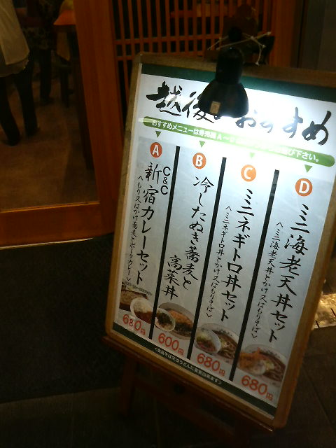 「かけそば」「月見そば」などの定番メニューやカレー・天丼などとのセットなど幅広いメニューを揃えていて、電車に乗るついでに手軽に食べていくのにちょうどよかったです。