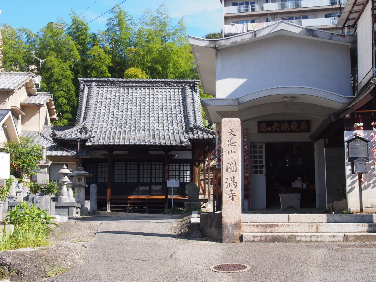 円満寺は道後温泉本館から東に100mほどにある寺です。常盤荘という旅館の横の道を入ってすぐの場所にあります。円満寺は夫婦円満のお寺ということで、夫婦で訪れるのがよさそうです。本堂などはごく小さなお寺です。