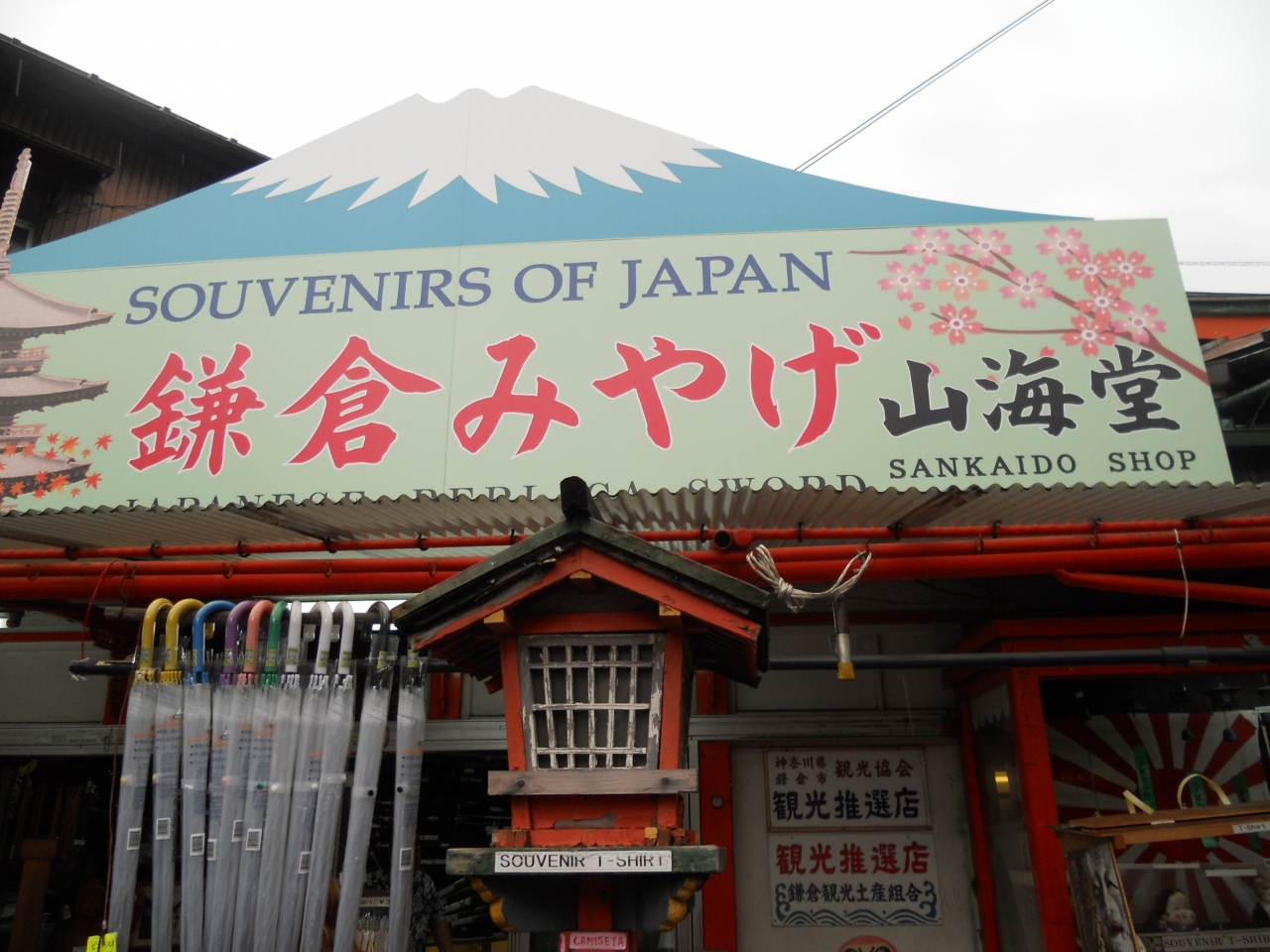 「山海堂」は、江ノ電の「長谷駅」から「高徳院」側へ北に通る「長谷通り」沿いにあるおみやげ店ですが、特に刀や剣、十手などの武器のレプリカなどが目立ちました。