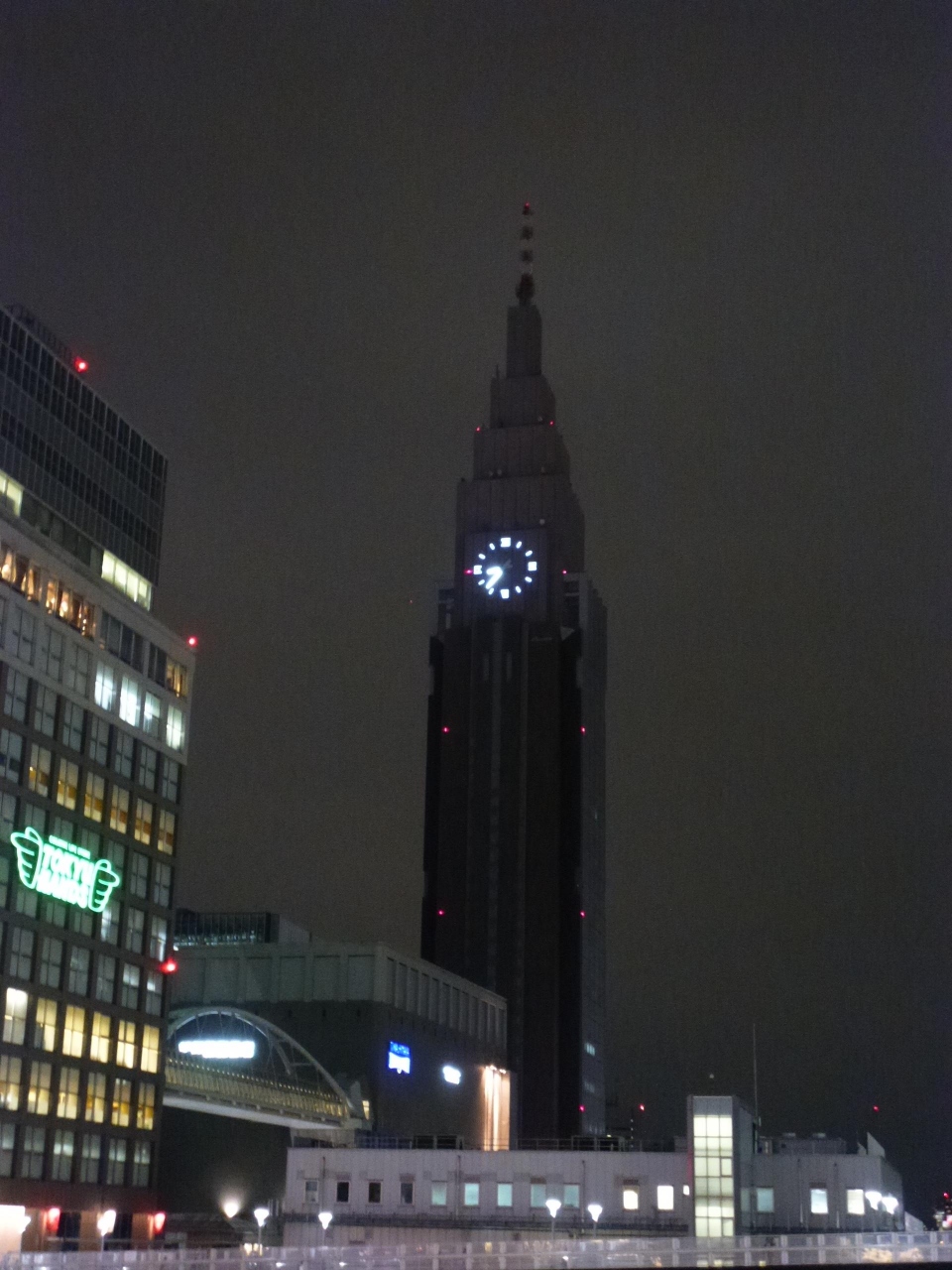 NTTドコモタワーはシンボリックな外観をしているのと、周囲に高い建物がない事からとてもよく目立ちます。新宿駅新南口からは、タイムズスクエアビルのすぐ隣に見ることが出来ます。写真で見るよりもはるかに迫力があり、出来ればクリスマスだけでもライトアップして欲しいと思いました。