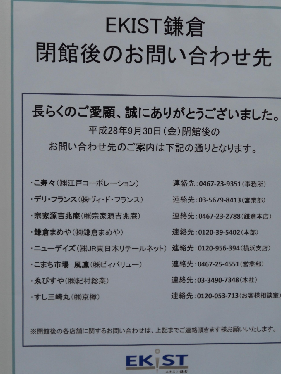 鎌倉駅の駅ビル「エキスト鎌倉」ですが、10月の三連休時点で、すでに閉店していました。。