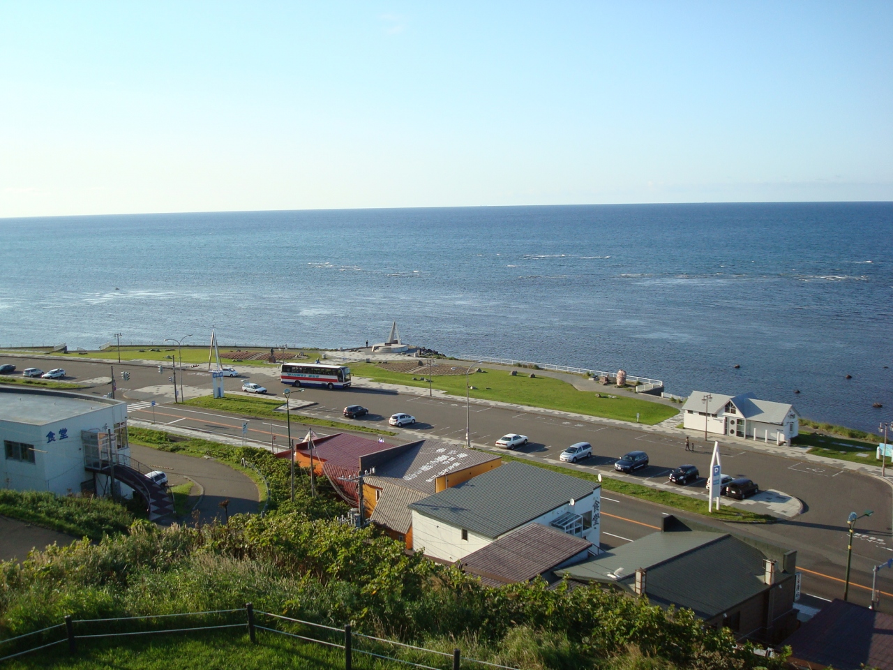 宗谷岬から階段を登っていくと、高台にたどり着くのですがここが展望台。宗谷岬を一望することができて絶景を楽しめました。きれいな海と、晴れていればサハリンも眺める事ができるそうです。この日は風が強くて大変でしたが、来る価値があると思います。