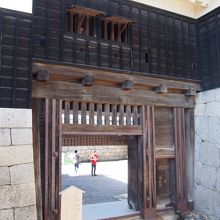三の門を通り過ぎ天守の庭へと入る最後の門が鉄筋門です。敵への侵入を守る最後の砦です。鉄筋門は櫓門で石落とし、落下門などの工夫もされています。門の扉には鉄の補強が行われていることから鉄筋という名前が付いています。天守閣への期待が高まります。