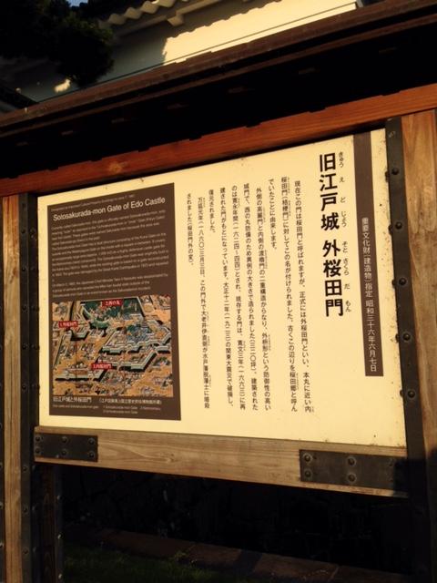 「外桜田門」というのがこの門の正式名称です。もちろん「内桜田門」というのもあり(本丸に近い方です)、これは桔梗門と呼ばれています。また、この門は小田原街道の出発点にもなっており、小田原口とも呼ばれているそうです。
