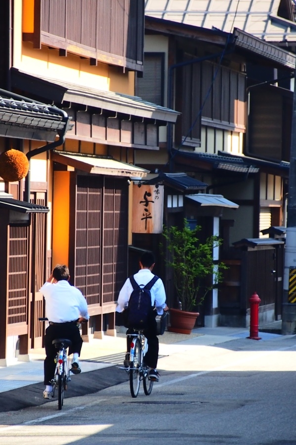 朝早く市営神明駐車場にクルマを停め、朝市見物のついでに、宮川にかかる橋をいくつか渡り、町並みをひとまわり散策しました。制服姿の高校生が自転車に乗り古民家の立ち並ぶ通りを駆け抜けて行きます。こういう風情のある通りが通学路とはうらやましい。湧水が鮮烈に噴き出している街角があるかと思えば、そのすぐ先に造り酒屋の醸造場があったり。水が良いのでしょうね。楽しく散歩させてもらいました。