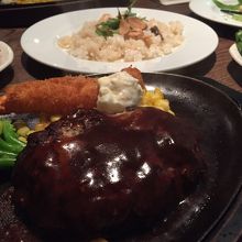 環七から少し入ったところにあるケネディです。ディナータイムお肉料理半額のクーポンをもっていたのでついつい来てしまいました。ハンバーグに、クーポンでプレゼントのエビフライもつけました。アルバイトの店員さんが多いのか私語が気になります。