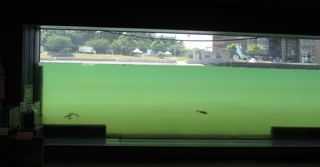 井筒屋の隣の施設「紫河's」の地下にあります。小さな水族館ですが、色々な工夫がしてあり、楽しめる施設だと思います。紫川に棲む生き物が展示してあったり、ゲーム感覚で紫川のことが学べたりできます。夏休みだったので、子供たちでいっぱいでした。一番感心したのは、直接紫川の中の様子を観察できるコーナーです。上から眺める紫川の中を横から見られるのはここしかないでしょう。井筒屋から地下でつながっています。