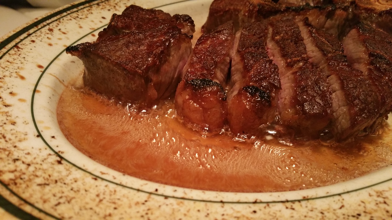 その後、とてもボリュームのあるティーボーンステーキがでてきます。
