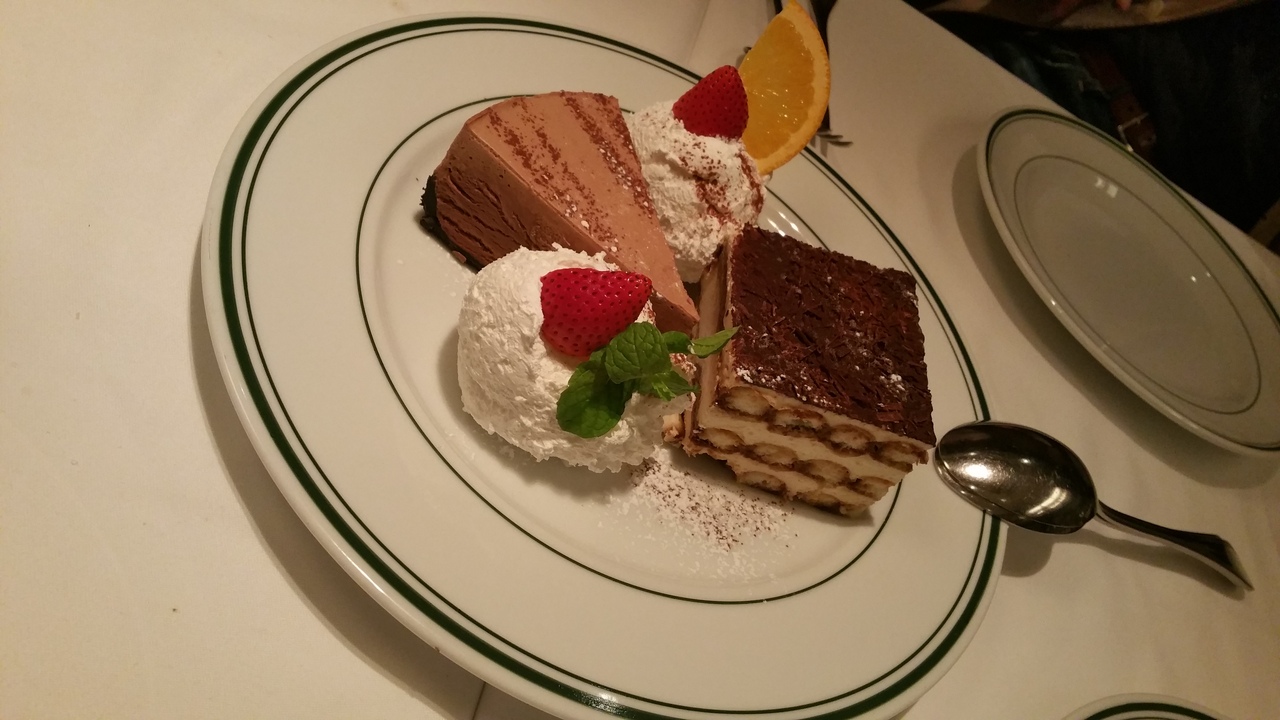 デザートも、大人数だったためか、盛り合わせが出てきましたが、数種類のケーキをつつきました。クリームを載せて食べましたが、クリームも甘すぎず、絶妙な味付けでついつい多くのせてしまいました。