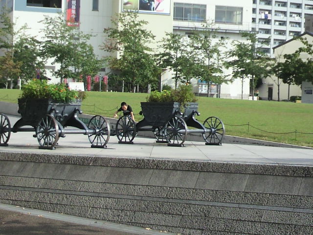 小さな子供が、喜んで走り回っています。そしてその子の後を親が心配そうに手を添えつつ走っています。アリオ川口の前の公園広場は、幸せそうな気持と光景であふれてます。