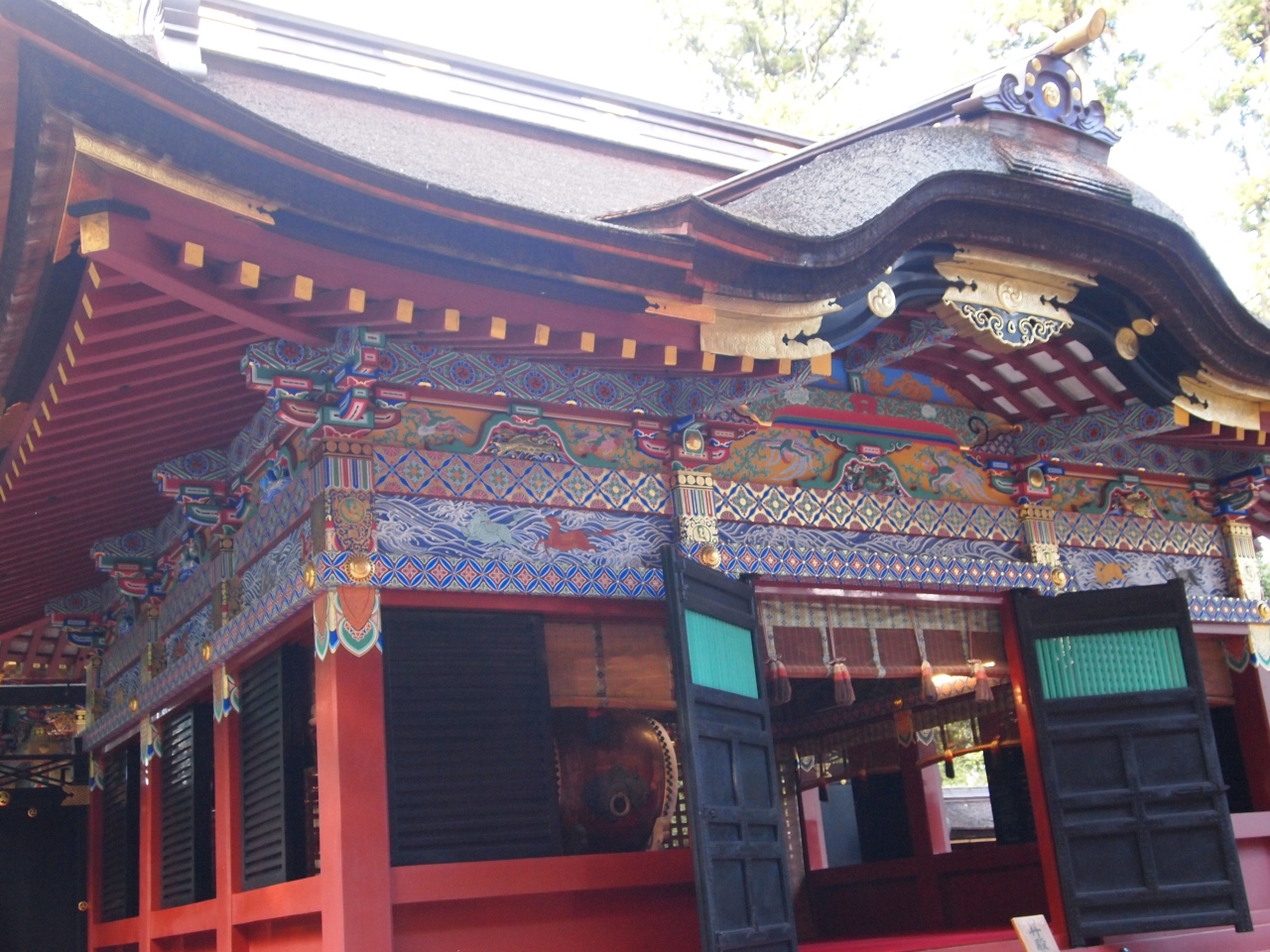 上野国一之宮の貫前神社です。江戸時代に造営された社殿は、総漆塗りの極彩色で、本殿や拝殿、楼門は国の重要文化財に指定されているそうです。是非、見ていただきたいのは、本殿です。2階建ての本殿は初めて見ました。不思議な建築様式です。