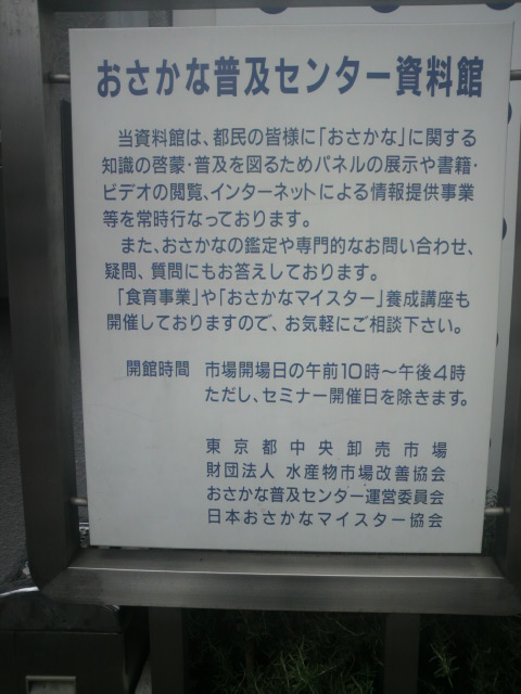おさかな普及センター資料館は、築地の中央市場の隅田川の傍にある東京都の施設で、魚の普及を促進するための施設です。