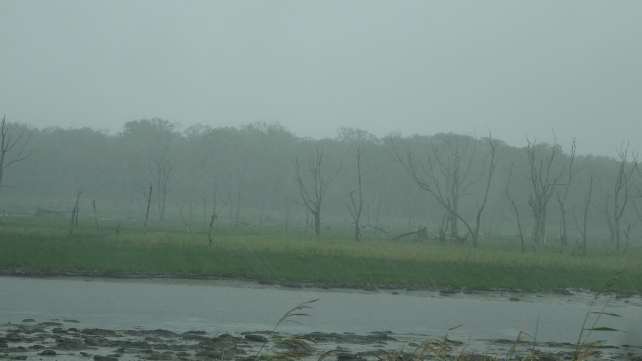 地図を見ると景勝地が見られるんだろうと思い行ってみました。付け根から先端まではかなりの距離(約15km)があります。あいにくの大雨で、道路が水没するのではないかという恐怖がありました。水没し枯れたトドマツが見れましたが期待するほどではありませんでした。