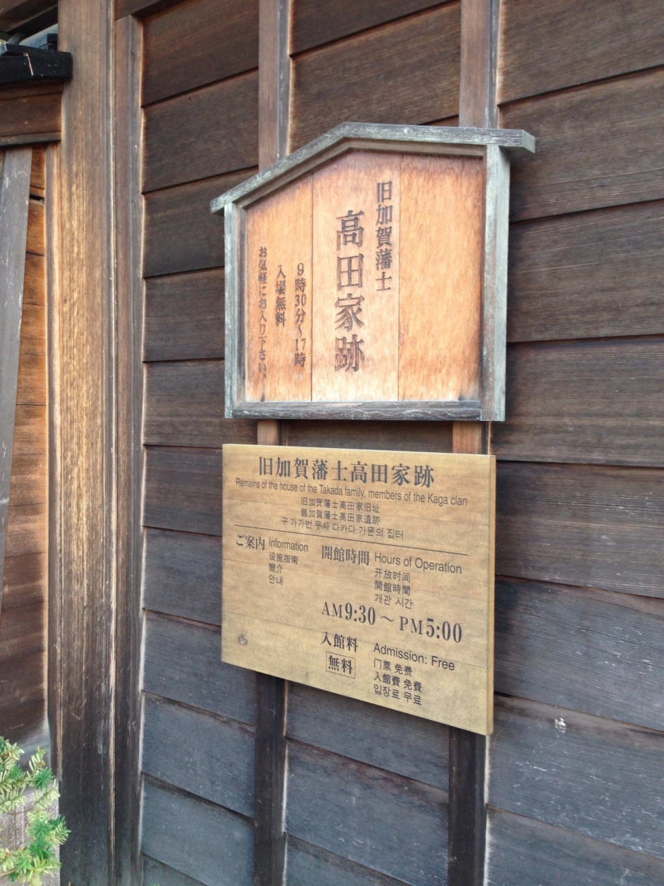 旧 加賀藩士高田家、長屋の中央のあった長屋門を修復し公開しています。