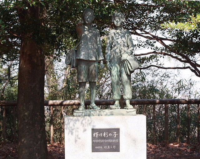 太平洋戦争の末期、川崎市内各校の児童たちが空襲を避けて学童疎開をしたが、生田の桜本国民学校の生徒たちが枡形山にあった鍛錬道場に学童疎開したことから、ここに記念像の建立が決まったそうです。