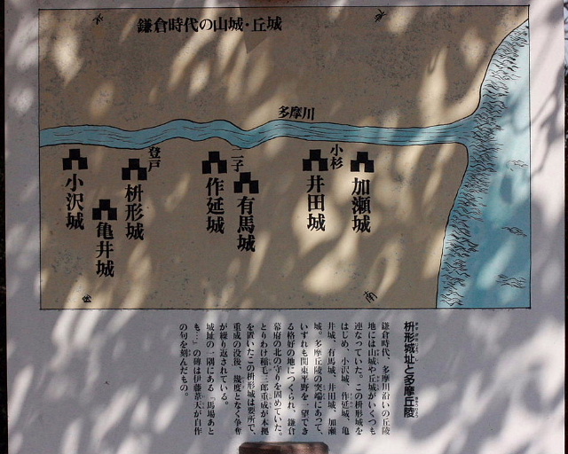源頼朝が鎌倉に幕府を開いた頃、稲毛三郎重成がここ枡形山に築城したそうです。稲毛三郎重成は北条政子の妹を妻に迎え、源頼朝の重臣として活躍した人物だそうです。