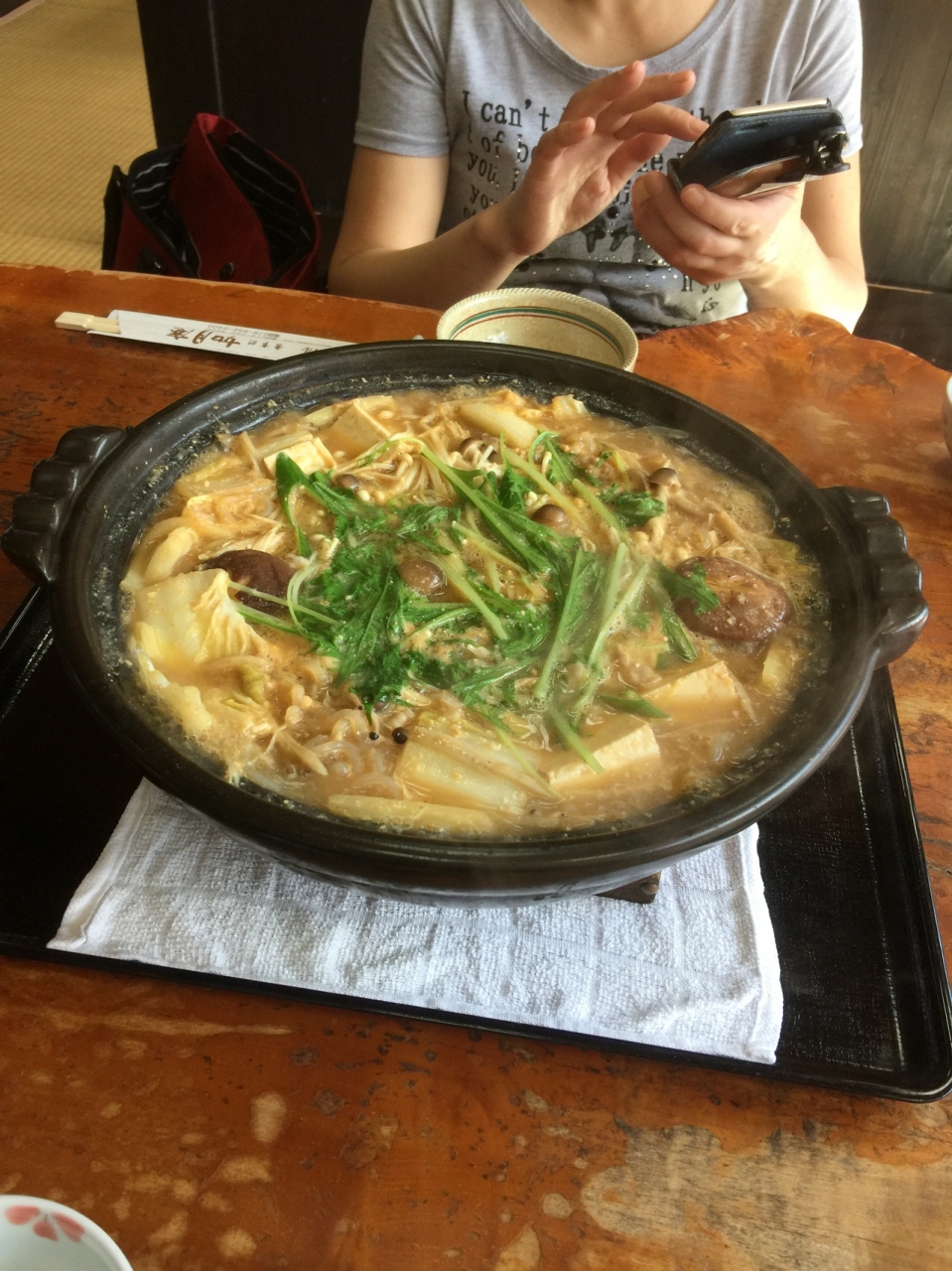 丹波篠山ではいつも昼御飯で悩みます。行楽シーズンは人の多さの割に店が少ない印象がありますので。こちらは、メイン通りから一本横に入った場所にあり、ゆっくり出来ます。オーダーしたデカンショうどんは、猪肉の代わりに豚肉が入っているだけでほぼ牡丹鍋の味。具沢山で大満足です。