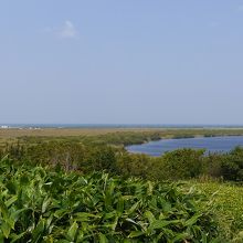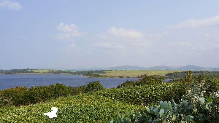 稚内空港の入口の道道1059号をゴルフ場方面に直進。メグマ原生花園の木道に入るかゴルフ場そばのメグマ沼自然公園入口から眺めることができる沼。どちらかというと高さがある分、ゴルフ場そばからのほうが全景を眺めやすい。周辺はあまり遮るものがないので遠くまで見晴らしがよい。