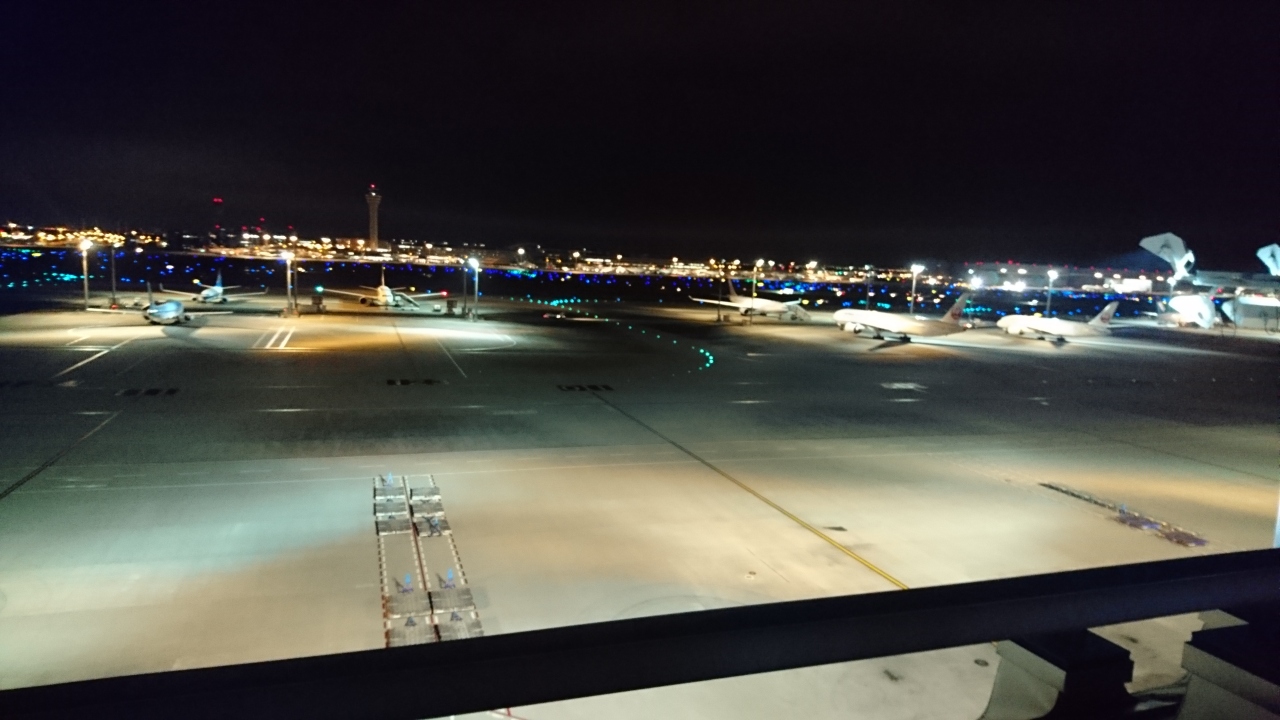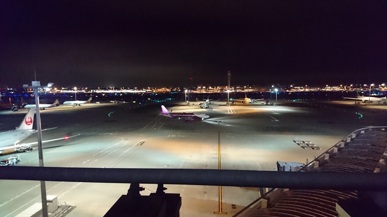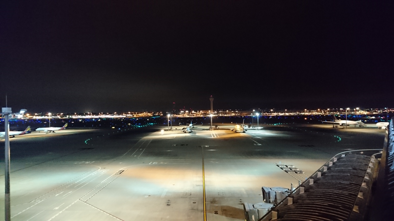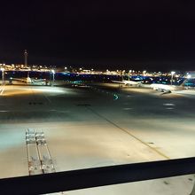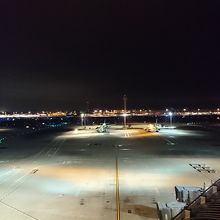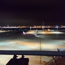 深夜まで飛行機が離着陸する国際空港だけあり、夜でも飛行機が動いています。深夜は、流石に見学者が皆無で貸し切り状態。