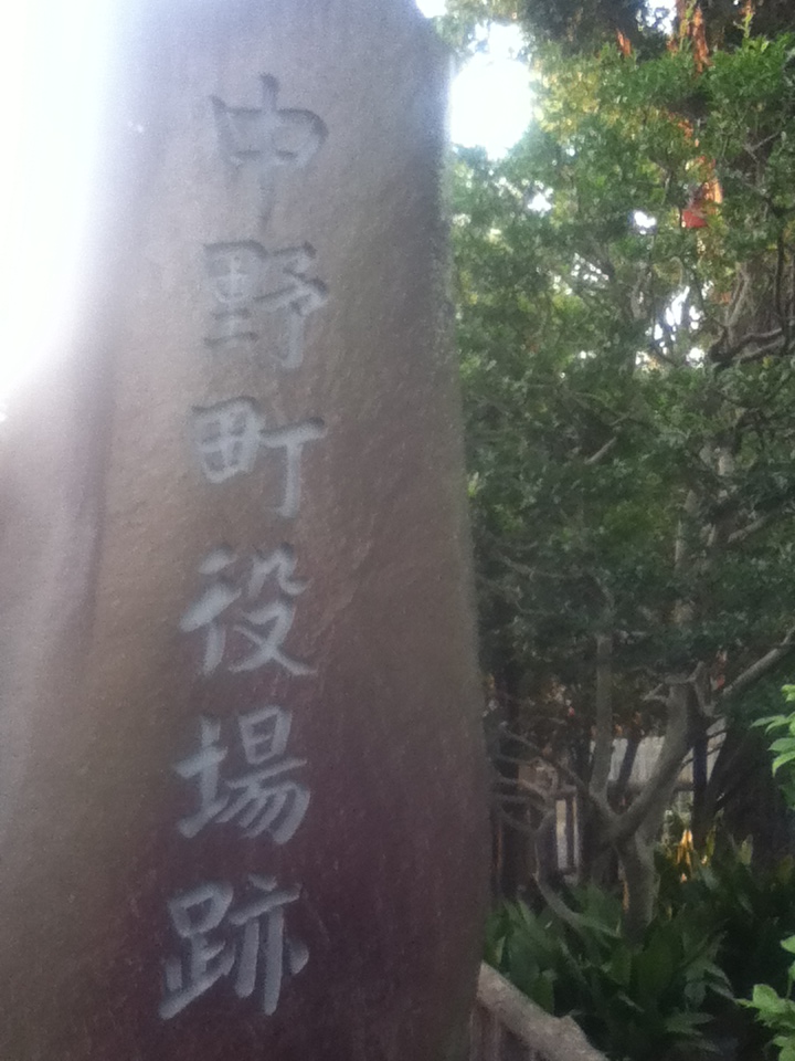 地下鉄中野坂上駅の西側、早稲田通りから北側へ入った処にある宝仙寺にある。立派な仁王門を抜けると、左側にこちらの石碑がある。石碑は比較的大きく、名称がくっきりと刻まれている。明治28年から昭和の初期まで、中野町役場がここにあった。境内には三重塔などもあり、併せて訪問するのもいいかもしれない。