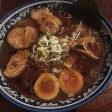麺は細麺のちぢれ麺で、スープは寒い地域らしくしっかりとした醤油スープです。