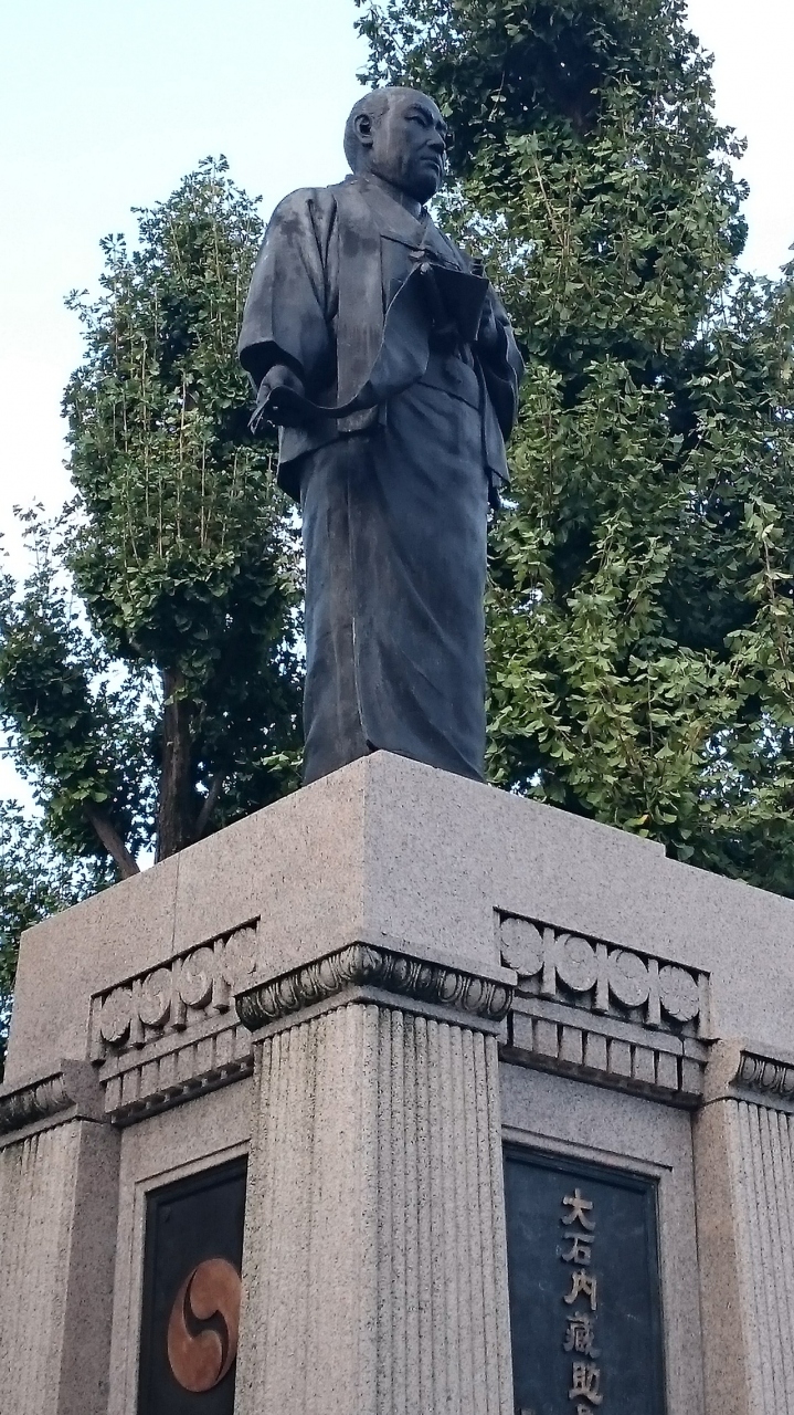 中門を入るとすぐに『大石内蔵助吉雄』の銅像があります。