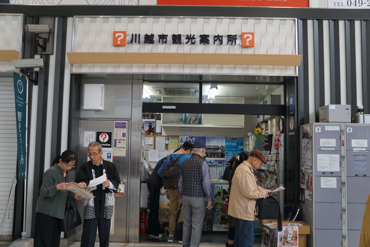 川越駅観光案内所は、川越駅の改札を出てすぐの左手。これなら誰でも気が付くベストポジションでしょう。川越祭りの期間中だったので、スタッフも複数いて賑わっていました。祭りの案内も豪華な色刷り。観光に力を入れている感じがよく伝わってきて、川越がんばってます。