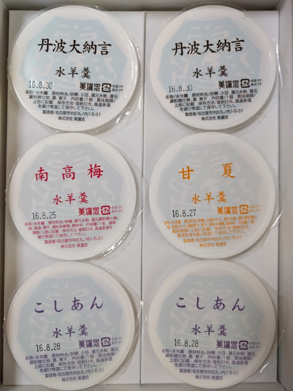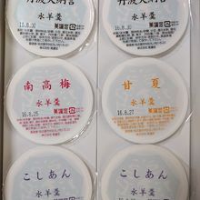 『丹波大納言』と『こしあん』が2個ずつ、『南高梅』と『甘夏』が1個ずつ入ってました。