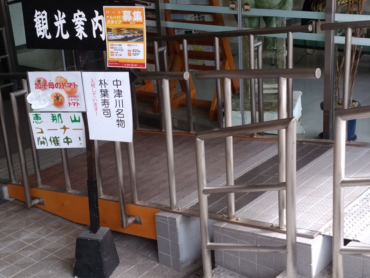 中津川駅を降りてすぐ左のほうに進むと、にぎわい特産館があります。 駅の続きのような距離です。