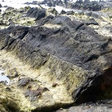 頁岩と凝灰岩が層状になって海蝕台の「荒崎海岸」