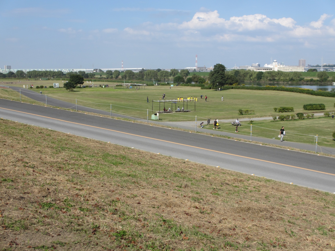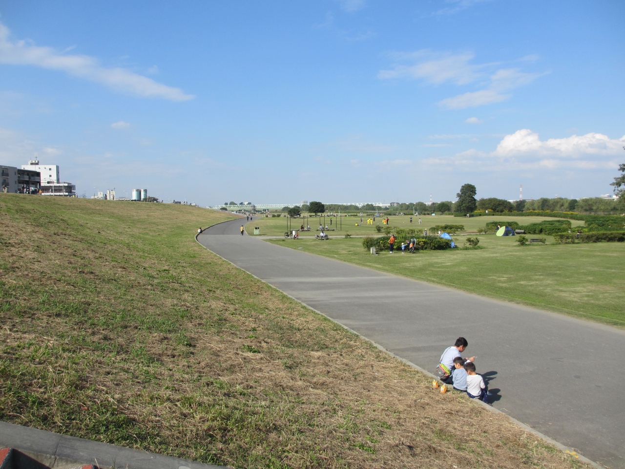 柴又から矢切の渡しへ行きました。葛飾区側の河川敷は野球場、サッカー場として活用されています。休日に訪れたので各施設で試合や練習をしていました。矢切の渡し近くの草広場では家族が遊んでいたり、小さなグループがサッカーの練習をしていました。スーパー堤の構造について説明板が立っています。新葛飾橋よりでは釣りをしている人がいました。日影がほとんどないので夏は暑そうです。堤を歩いていた時、自転車がスピードを出していて危なかったです。狭い個所では徐行してほしいものです。