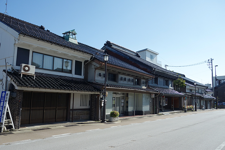 高岡の町並みと言えば、まずは金屋町ですが、そこからそれほど遠くない位置にあるこの山町筋もぜひ見るべき場所です。川越のような蔵の家並みが見られます。重要文化財の菅野家住宅や高岡市土蔵造りのまち資料館、高岡御車山会館、赤れんが造りの銀行など、観光ポイントが点在しています。