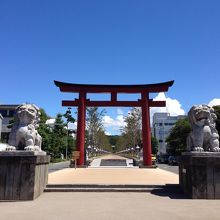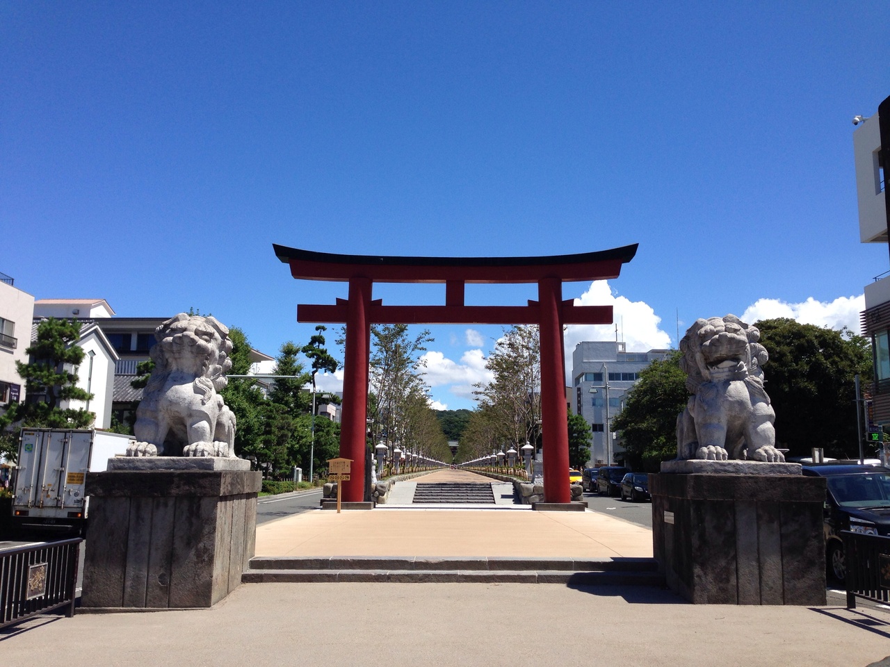鶴岡八幡宮へ向かう段葛のスタート地点に立つ鳥居。両サイドが車道となっていて 鳥居の脇を車がバンバン走っていくのは 少し不思議な光景。記念撮影をする方も多いですが、ここでUターンする車も少なくないのでご注意を。