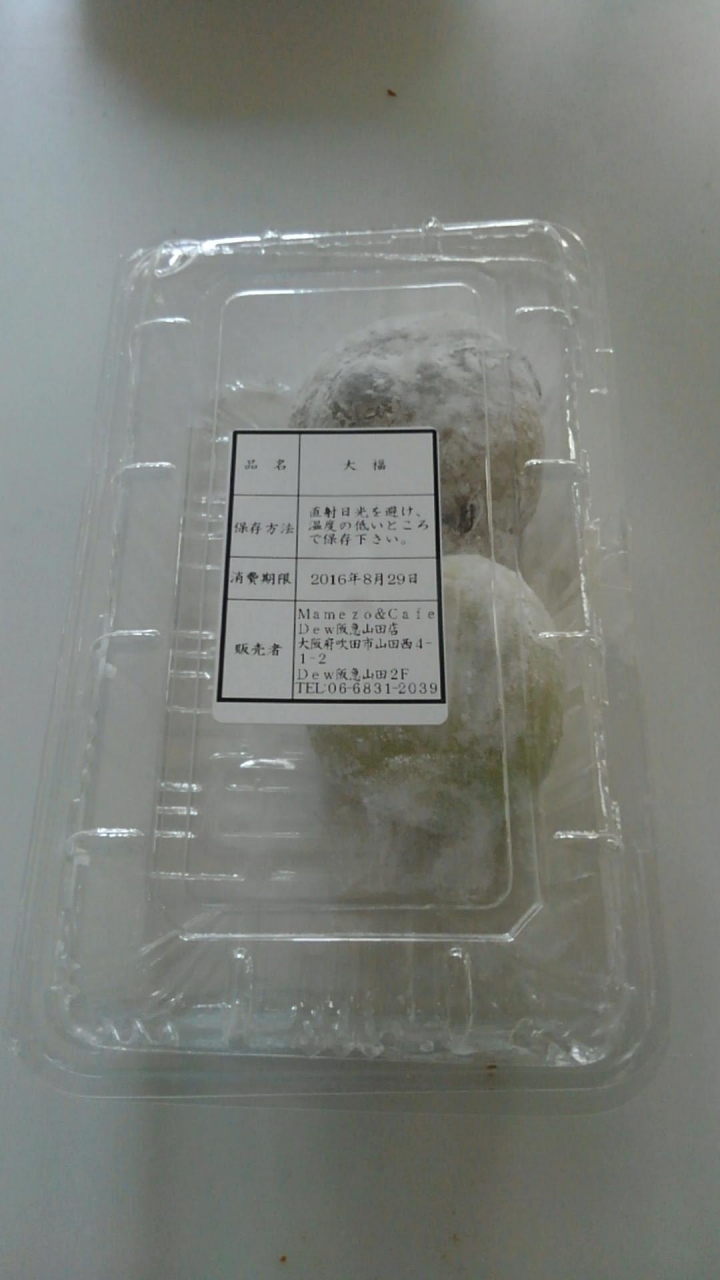 阪急山田駅からすぐのショッピングモールのDew山田の入口すぐにあるカフェですが、毎月29日は大福の日ということで、大福の割引があります。こちらの大福は豆がしっかりしていてあんこたっぷりもちもちで美味しいですね。