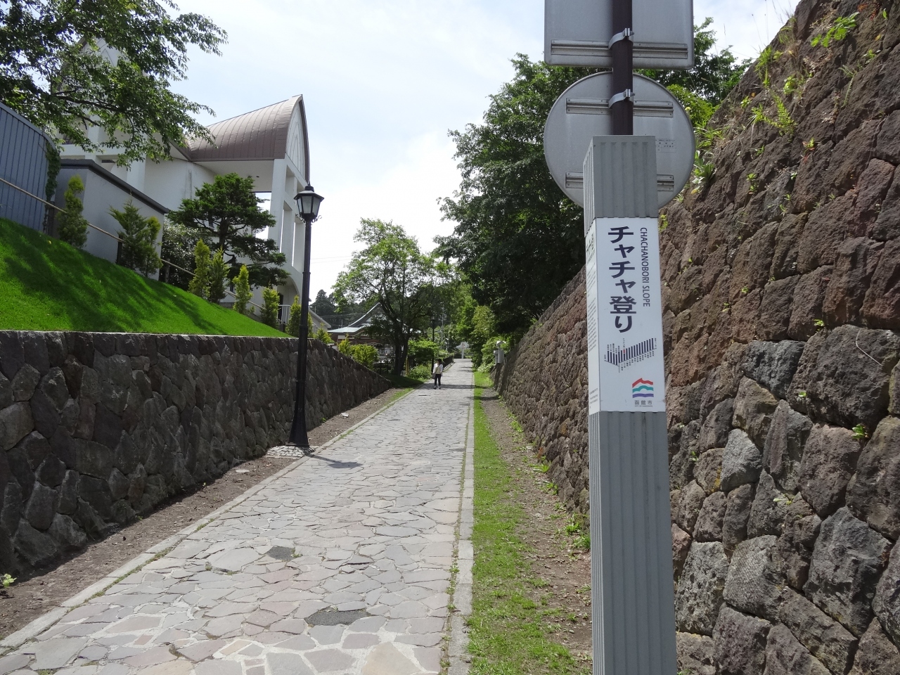 石畳の小道ですが有名な観光名所です。坂を上る際に腰を曲げて上ることから、おじいさんの意味のちゃちゃという名がついたらしいです。ここからの函館の景色もまた素晴らしく、教会群を散策する際には通る道となっています。