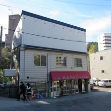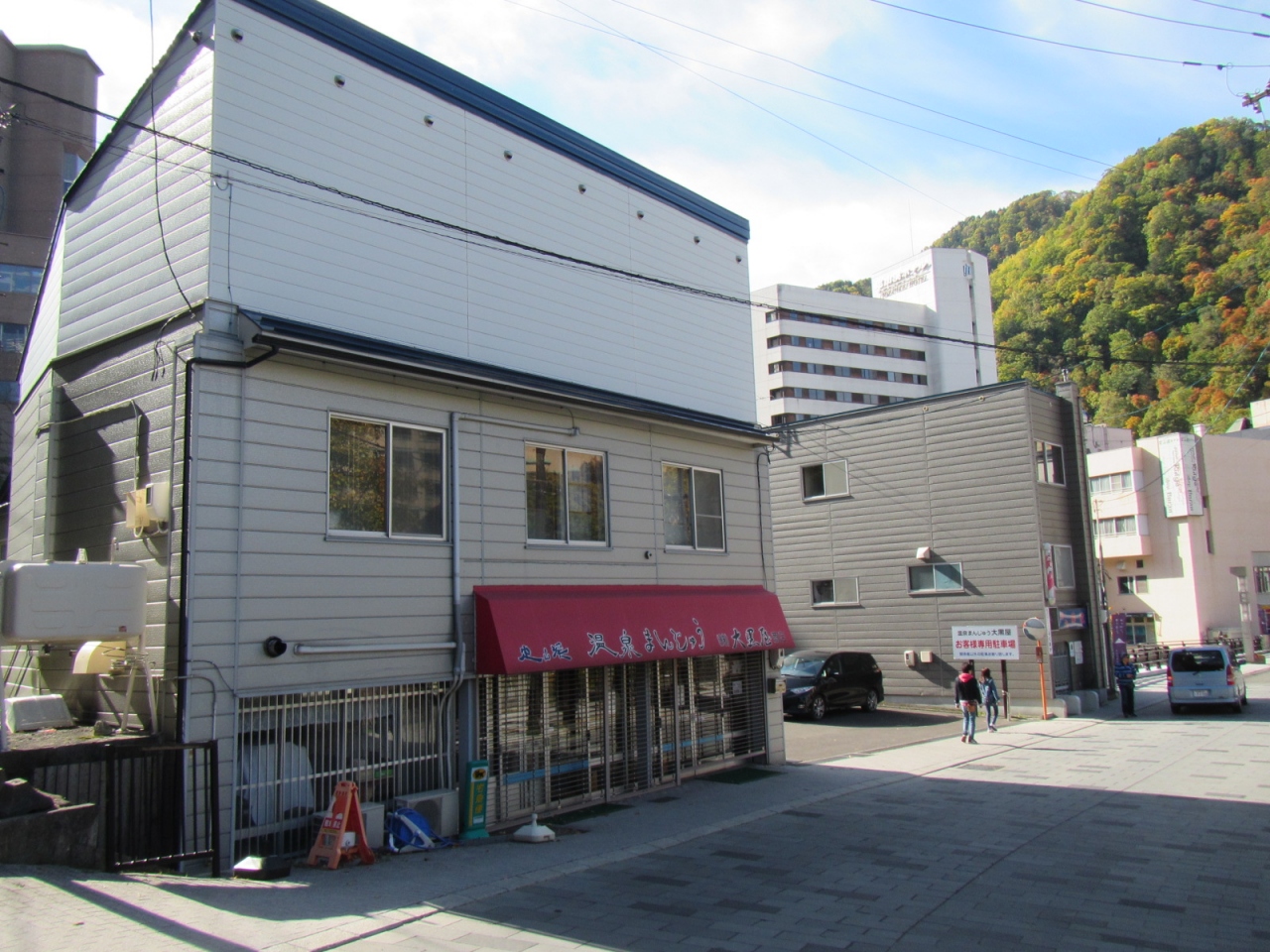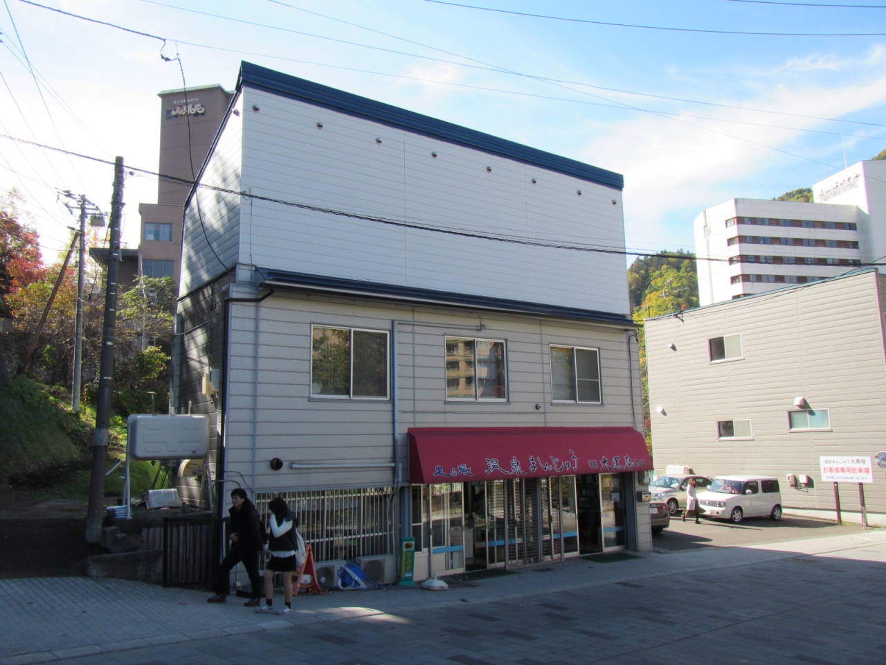 定山渓のメインストリート、温泉街へ入っていく月見橋のたもとにあるまんじゅう屋です。
