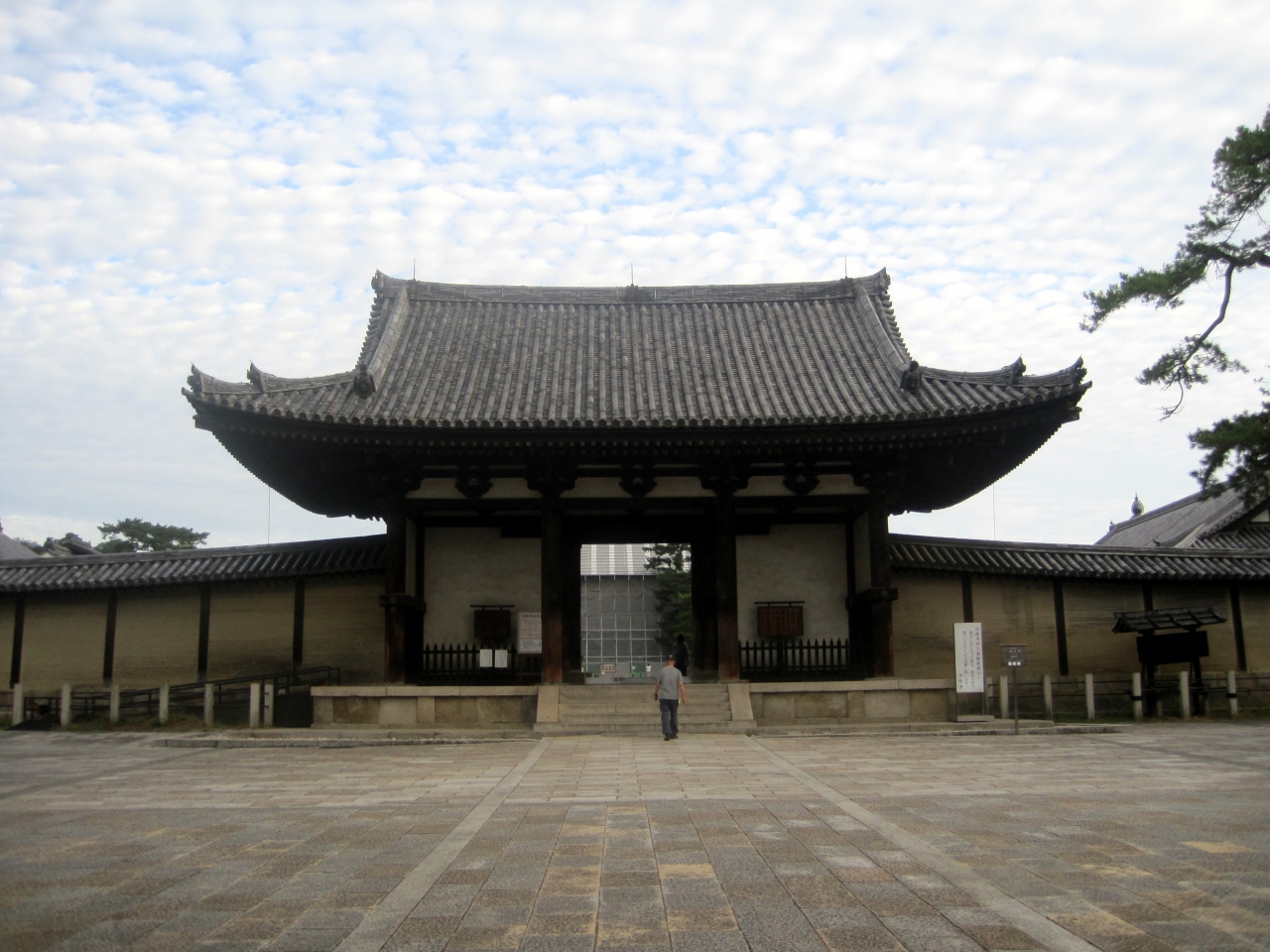 - 国道25号線から法隆寺の参道は始まり最初に出会う建造物が南大門。
