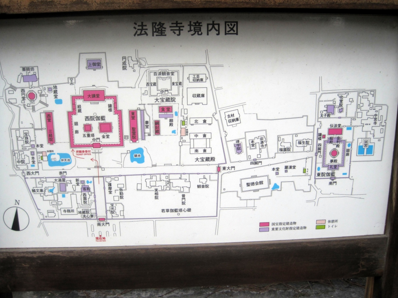 左側には現代的な表示形式で法隆寺の伽藍配置図がある。