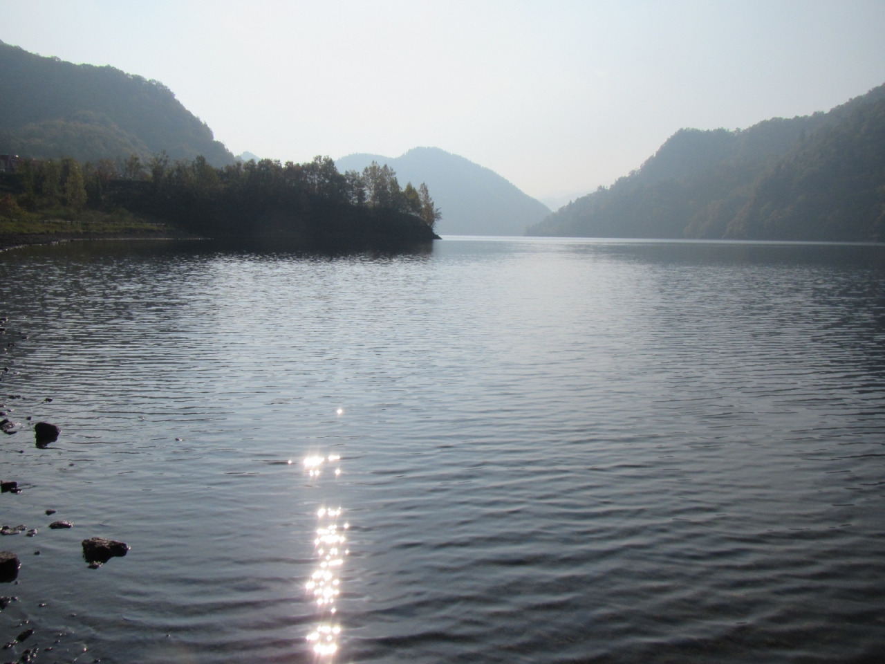 第4は、駐車場からちょっとした高台に登って眺めますが、湖が長く伸びた分、少し引いた位置から鳥瞰する印象があります。