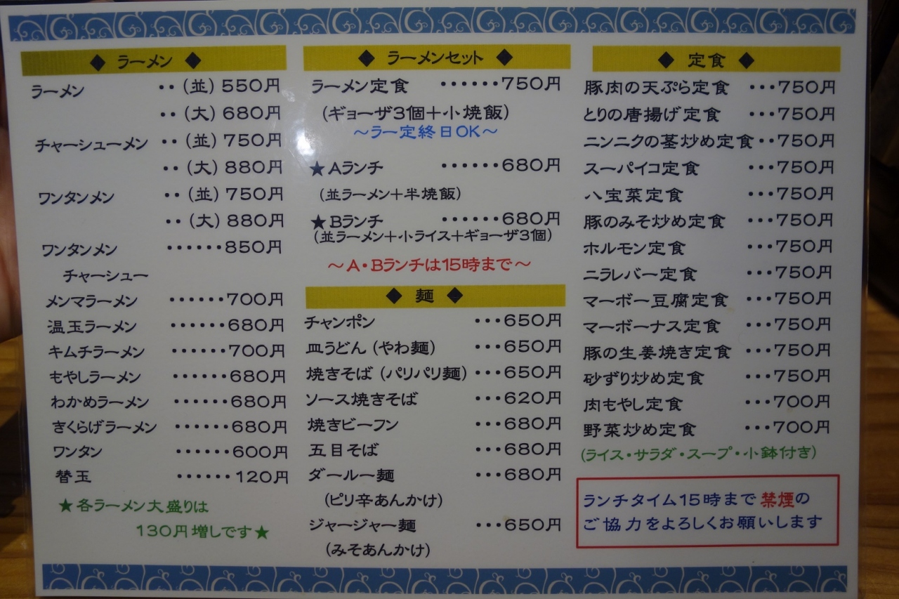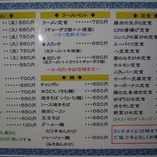 メニューはラーメンのみならず、様々な中華料理がありました。