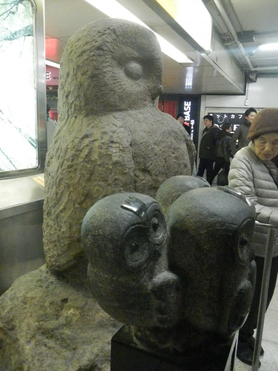 池袋には月に1回ぐらいは行っているが、私は池ふくろう像がある北側の自由通路はほとんどと通ることがないので意識して行かないと見ることができない。久しぶりに見てみるとここで待ち合わせている人が多い。人が写真に写らないようにするにも一苦労だった。