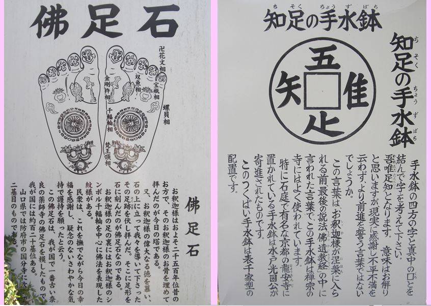 仏足石や知足の手水鉢を心静かに眺めることができました。