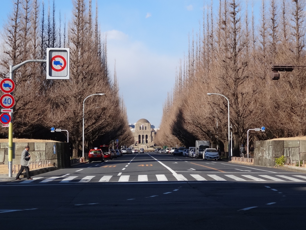 素敵なイチョウ並木がとても印象的でした。冬だったので少しさびしい感じでしたが、それでも並木道の景観の美しさは圧巻でした。他にも建設中の国立競技場などを含めて、運動場がいろいろとあって、広々とした空間でした。
