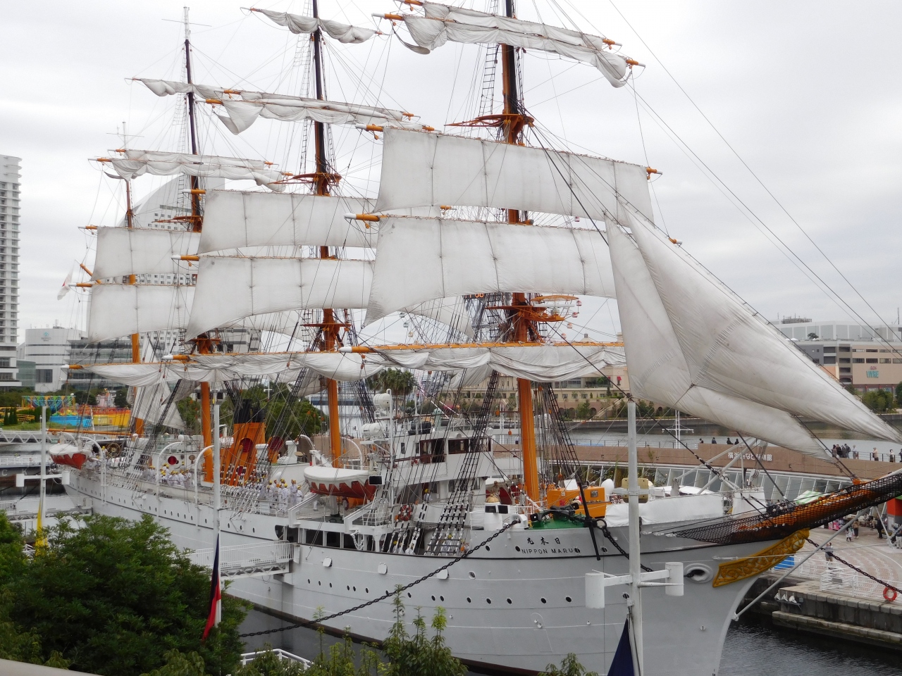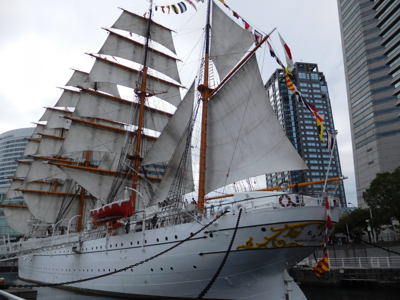 JR桜木町駅から数分の距離にあり、かつては船員を養成する為の練習帆船でした。みなとみらいが紹介される時は、この「日本丸」が入った景色が使われる事がよくあります。横浜には何度も足を運んでいますが、すべての帆を広げる「総帆展帆」は見た事が無かったので、HPでスケジュールを確認して行きました。ちょうどお昼前に着くと、大勢のボランティアの人達が掛け声をかけながら、帆を広げて行く様子を見る事が出来ました。「太平洋の白鳥」と呼ばれたのがなるほどと思える位、とても美しく、見応えがありました。船内も有料で見学する事が出来ます。