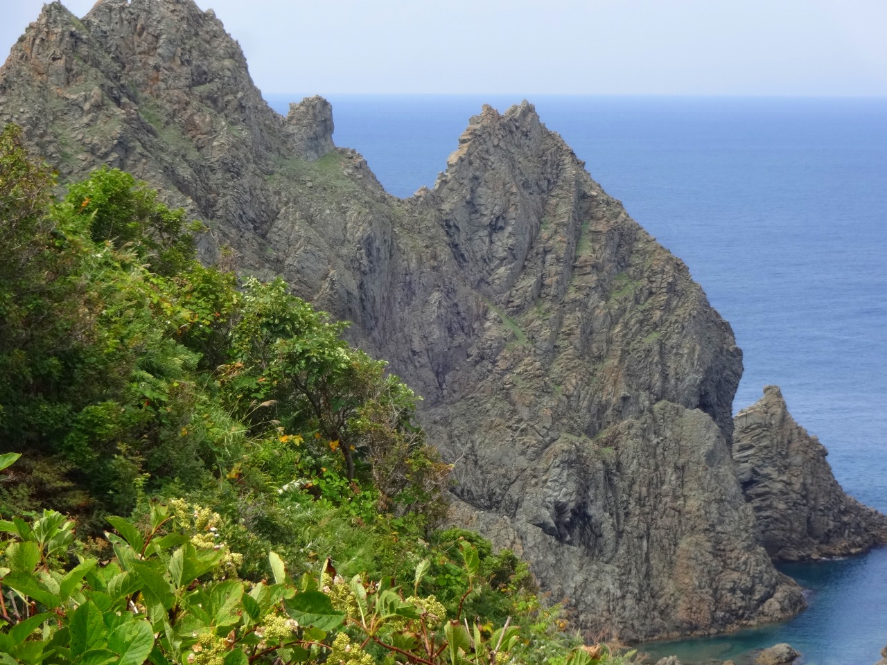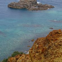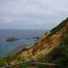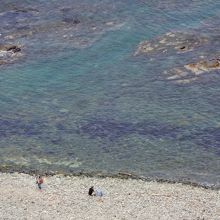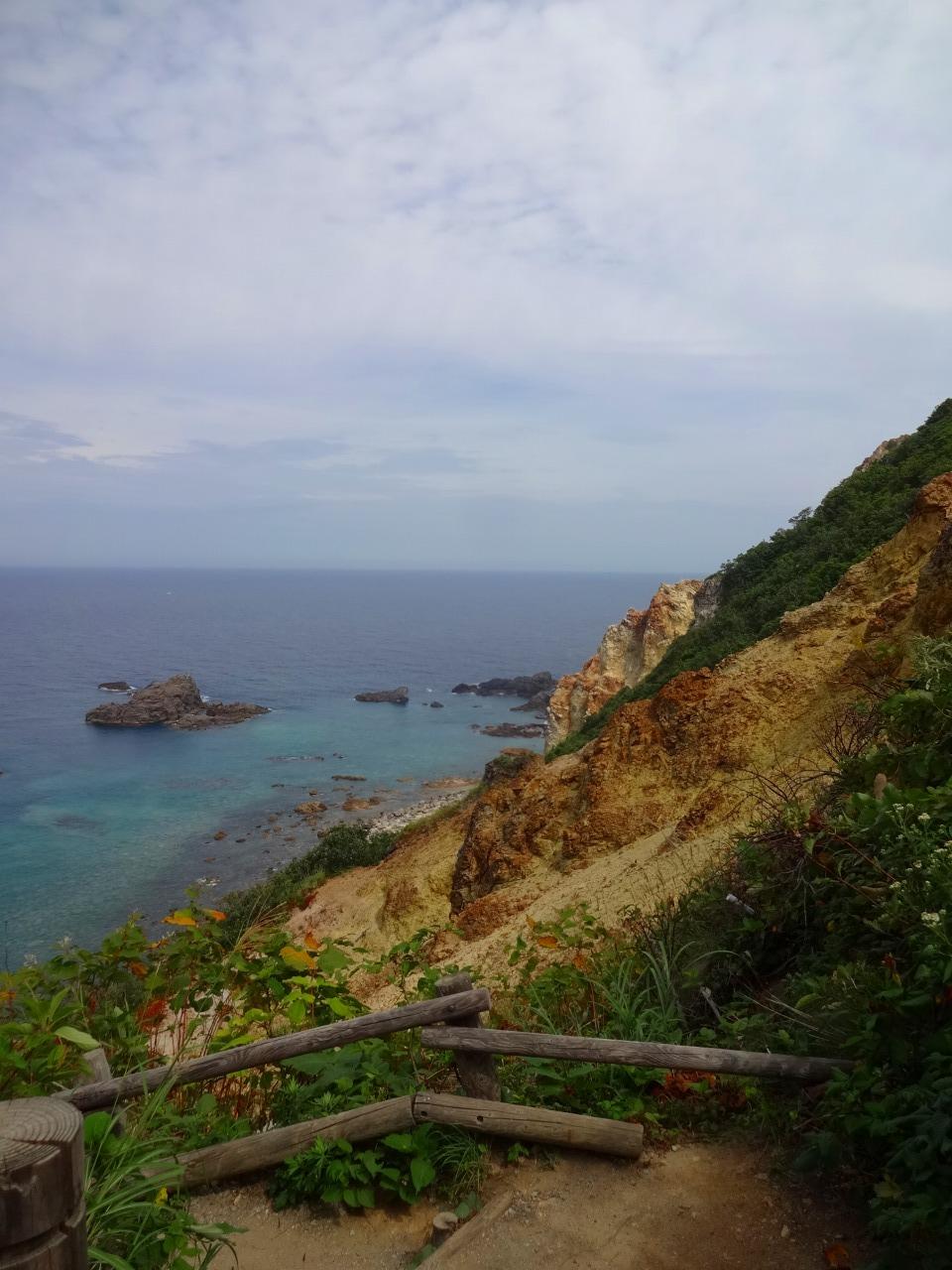 この島武意海岸は日本の渚100選にも選ばれている名勝ですが、渚には急な階段をかなりの距離降りていく必要があります。