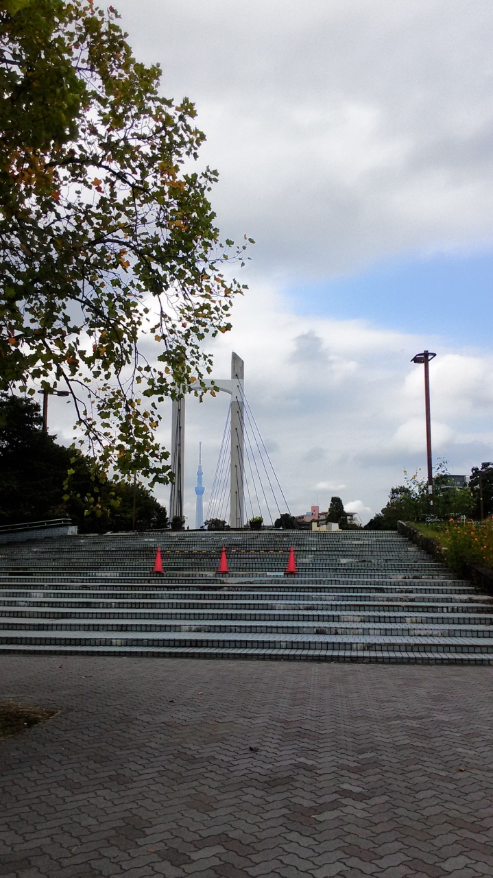 1周は広いので、木場駅側の半分ほどを歩いてみました。バーベキュー広場があったり、緑化の施設があったりして、大きな橋の向こうには、スカイツリーも見えました。