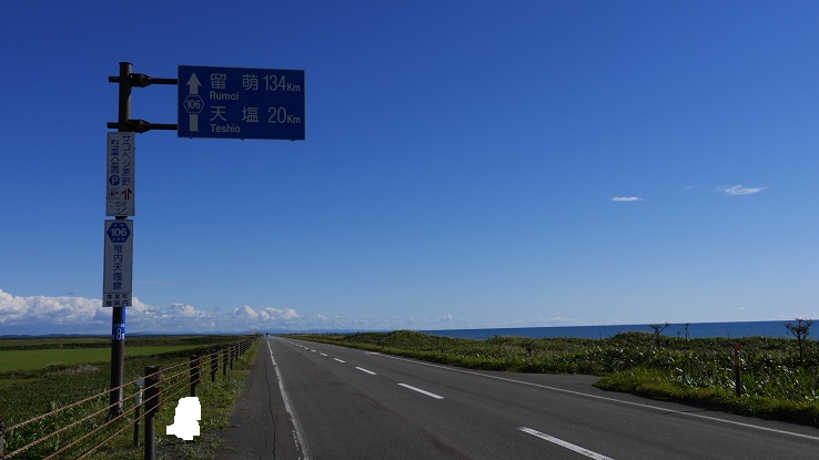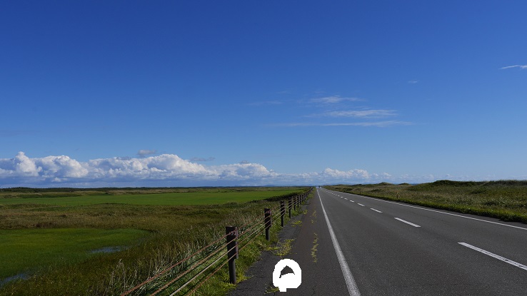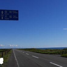 道北の日本海に沿って伸びるルート。きれいな海が間近に寄り添い、遠く利尻山を眺められる。一方、道路を挟んで人工物の無い原野が広がり、時に風車群が並ぶ。まっすぐと続く道は走っていて気持ちがいいがくれぐれもスピードの出しすぎとよそ見には注意したい。ところどころで駐車スペースがあるので広大な景色を見がてら休憩したい。雨の日や海霧発生時は注意が必要かも。