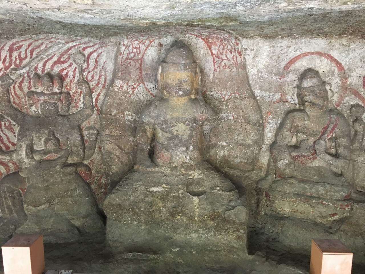 石窟に5体の仏様が彫られており、12世紀後半の平安時代に造られたと言われています。